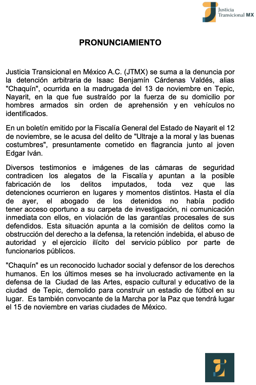 📢 Desde Justicia Transicional en México (JTMX) alzamos la voz: